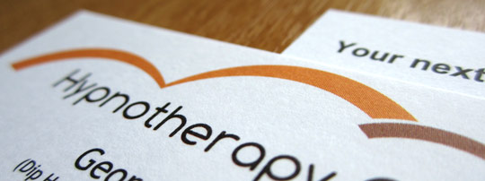 Double sided business cards created for Hypnotherapy Choice featuring contact details and an appointment card...